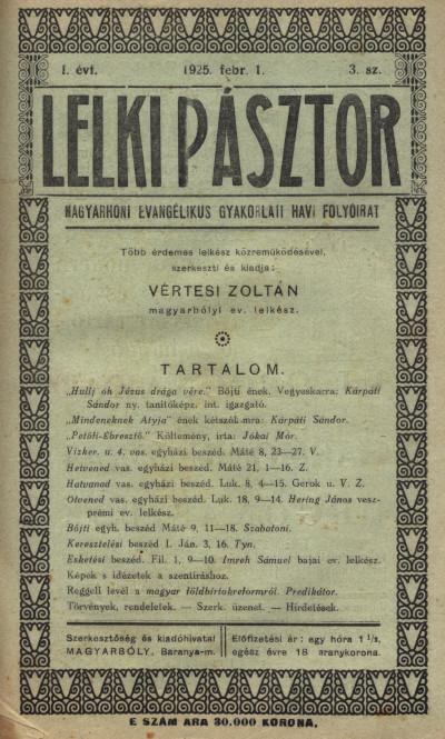 [11] A 20. század első felének anyagai némileg feldolgozottnak mondhatók, mivel Id. Hafenscher doktori értekezésében külön fejezetekben foglalkozott a Lelkipásztor 1967-ig megjelent számaiban publikált homiletikai témájú és igehirdetői előkészítő gyanánt írt cikkeivel (Hafenscher 1967, 439-513. o.)